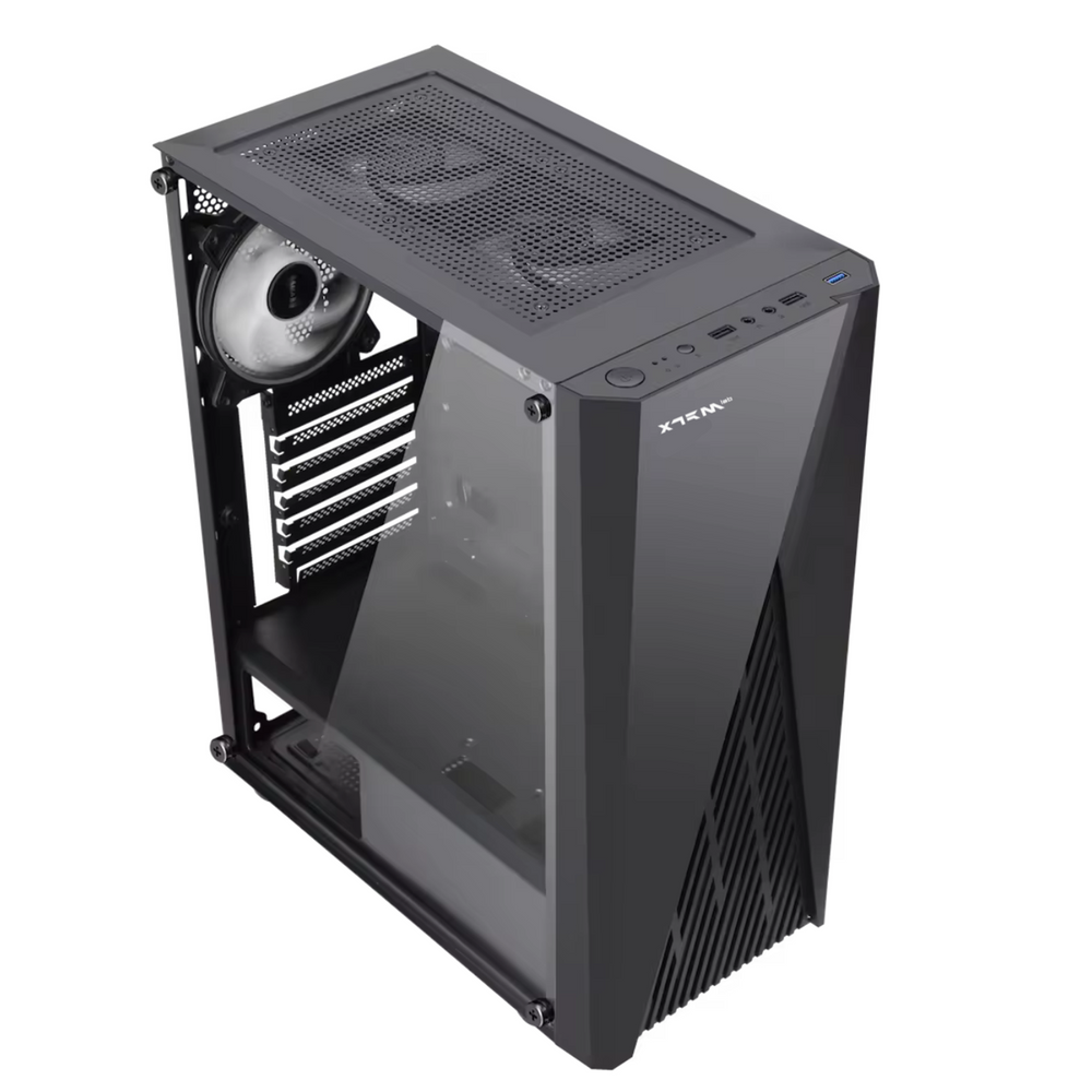 Signé XTRMLAB , le boîtier GALAX sera idéal pour votre configuration Gaming. Spacieux, il est compatible avec les cartes mères ATX et micro-ATX et peu accueillir une carte graphique de 330 mm tout en proposant une ventilation optimisée et colorée grâce à un ventilateur ARGB 120 mm inclus à l’arrière. Son design audacieux se traduit par des parois transparentes et un système ARGB compatible avec la plupart des cartes mères équipées d’un connecteur ARGB ce qui illuminera vos composants durant vos parties.